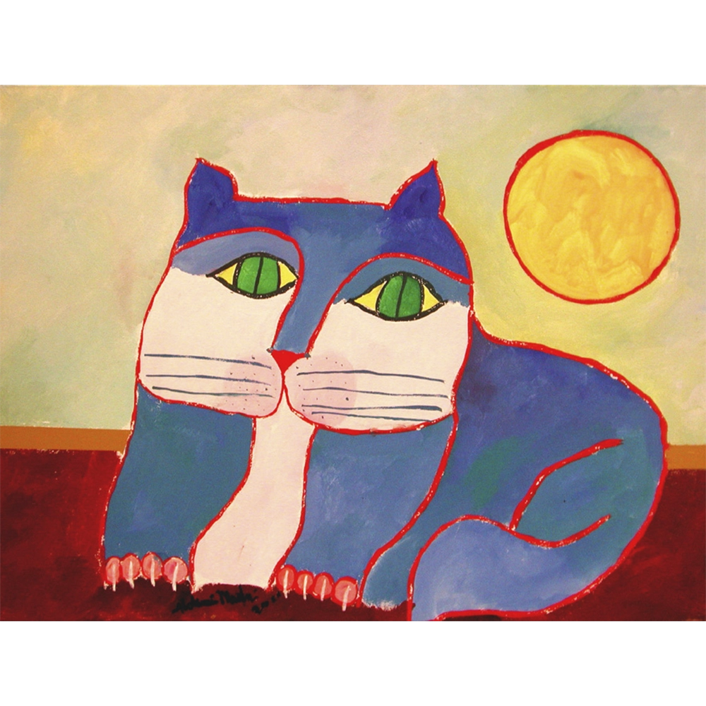 Aldemir Martins - Gato azul. Acrílica sobre tela, 60x80 cm, 2002