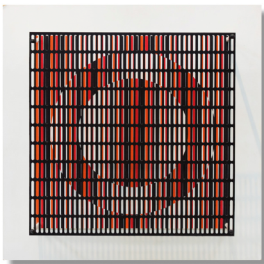 Antonio Asis – Vibration cercles noir, orange et rouge 5/15. Mural de acrílico, 52x52x14 cm, 2010, A.V