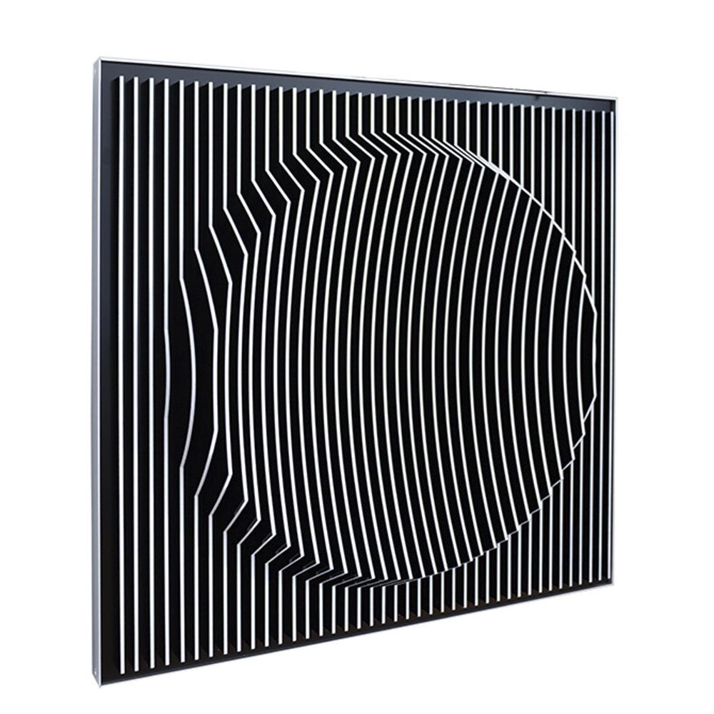 Jose Margulis – Portholes 16-10. Acrílico e pintura, 40x40x8, 2024. Código: 20221 Registre Interesse Assinada no verso Obra em lâminas de acrílico colorido. Eu crio arte geométrica abstrata infundida com elementos cinéticos, materializando-se como esculturas 3D de parede e chão, feitas a partir de materiais compostos de plexiglass cortado a laser por CNC e alumínio. As cores em meu trabalho são aplicadas exclusivamente nas bordas de cada aleta, que são planos seriados seguindo a topografia de um sólido virtual desenvolvido por meio de software de modelagem 3D. Minhas composições sobrepõem significado, envolvendo os espectadores em experiências visuais únicas. Um tema recorrente é a interação dinâmica entre fundos claros e escuros, que cria fortes contrastes, convidando os observadores a explorar as complexidades de perto e depois se afastar para absorver a peça à distância. A natureza cinética do meu trabalho garante que ele mude à medida que os espectadores se movem ao redor dele, oferecendo perspectivas radicalmente diferentes de vários ângulos. Essa observação dinâmica atua como uma metáfora para a empatia—ver a realidade através da perspectiva do outro, sem julgamento. Os fundos contrastantes realçam os aspectos tridimensionais e cinéticos, evocando respostas emocionais a códigos de cores específicos que muitas vezes induzem um estado de transe, fundindo o espectador com a peça. Recentemente, integrei a geometria de caracteres escritos em minhas construções 3D, onde cada fatia de plexiglass é um recorte de frases curtas e significativas. Estas criam uma estrutura visualmente entrelaçada que vibra cineticamente contra fundos contrastantes, representando a sabedoria que coletei ao longo da minha vida. Por exemplo, uma peça diz: “Isto não é o que parece”, com 79 peças de plexiglass, cada uma exibindo essa frase. A geometria abstrata no meu trabalho se desenvolve a partir do poder da intenção, influenciada por espiritualidade, bem-estar, bioquímica, geometria euclidiana e filosofia oriental. Esses interesses se manifestam como quadrados, círculos e superfícies que representam meus pensamentos. Eu exploro formas geométricas básicas—simetria, assimetria, volume, limites e transições—buscando composições equilibradas de maneiras inesperadas. A natureza tridimensional da vida é uma inspiração constante, com formas e volumes interagindo com o meu espaço, tornando-se fontes de ideias. Pirâmides, esferas e quadrados ressoam profundamente com minha psique, assim como a sabedoria nas palavras escritas. Minha técnica, enraizada em um relacionamento alegre com o software de modelagem 3D, me permite explorar ideias livremente, evoluindo minha linguagem única de cores e desafiando-me com temas cromáticos cada vez mais complexos, tornando meu trabalho ao mesmo tempo distintivo e pessoal. Outras obras do artista Jose Margulis – Portholes 16-10. Acrílico e pintura, 40x40x8, 2024. Jose Margulis – Portholes 16-22. Acrílico e pintura, 40x40x8, 2024. Jose Margulis – Portholes 20/3. Acrílico e pintura, 50x50x8 cm, 2024. Jose Margulis – Portholes 16-17. Acrílico e pintura, 40x40x8, 2024. José Margulis – Portholes 20/1. Acrílico e pintura, 50x50x8, 2024, A.V
