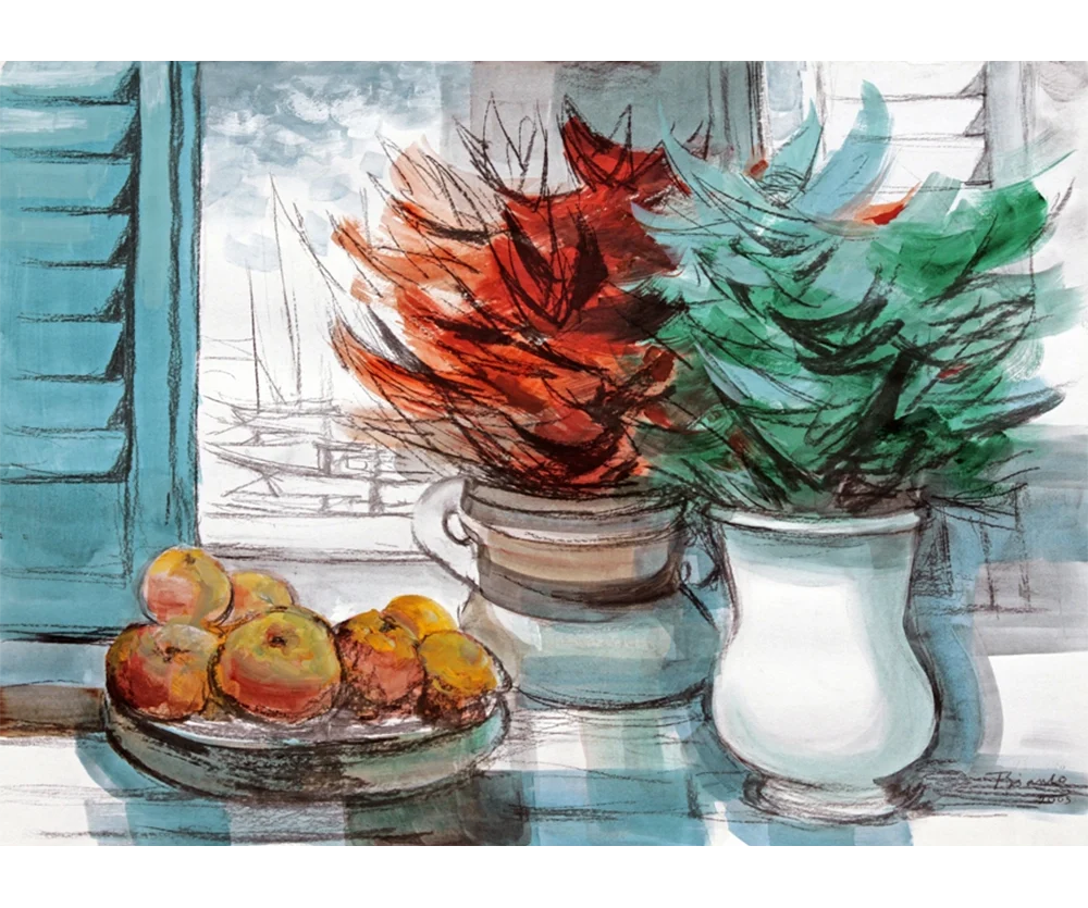 Enrico Bianco - Natureza morta com flores. Carvão e acrílica sobre papel, 56x77 cm, 2005