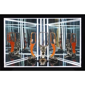 Fernando Cardoso – Série cena infinita – Cacto 1-15. Neon, bronze, espelho, acrílico e madeira, 46x83x13 cm