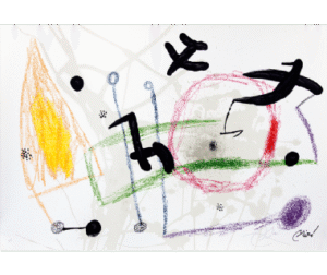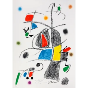 Joan Miró foi um importante escultor e pintor surrealista catalão. Quando jovem freqüentou a Escola de Belas Artes da capital catalã e a Academia de Gali. Em 1919, depois de completar os seus estudos, visitou Paris, onde entrou em contacto com as tendências modernistas como os fauvismo e dadaísmo. No início dos anos 20, conheceu o fundador do movimento em que trabalharia toda a vida, André Breton, entre outros artistas surrealistas. A pintura O Carnaval de Arlequim, 1924-25, e Maternidade, 1924, inauguraram uma linguagem cujos símbolos remetem a uma fantasia Naïf, sem as profundezas das questões psicanalistas surrealistas. Participou na primeira exposição surrealista em 1925. Em 1928, viajou para a Holanda, tendo pintado as duas obras Interiores holandeses I e Interiores holandeses II. Em 1937, trabalhou em pinturas-mural e, anos depois, em 1941, concebeu a sua mais conhecida e radiante obra: Números e constelações em amor com uma mulher. Mais tarde, em 1944, iniciou-se em cerâmica e escultura. Em suas obras, principalmente nas esculturas, utiliza materiais surpreendentes, como a sucata. Três anos depois, rumou pela primeira vez aos Estados Unidos. Já nos anos seguintes; durante um período muito produtivo, trabalhou entre Paris e Barcelona. No fim da sua vida reduziu os elementos de sua linguagem artística a pontos, linhas, alguns símbolos e reduziu a cor, passando a usar basicamente o branco e o preto, ficando esta ainda mais Naïf.