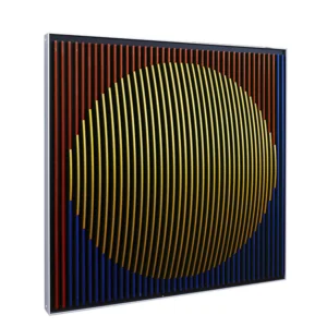 J. Margulis cria arte geométrica abstrata com elementos cinéticos, manifestando-se como esculturas 3D de parede e chão, feitas de plexiglass e alumínio. As cores são aplicadas nas bordas das aletas, formando composições que exploram contrastes entre fundos claros e escuros. A natureza cinética da obra muda conforme a perspectiva do espectador, simbolizando empatia. Recentemente, integrei caracteres escritos em minhas peças, onde frases curtas criam estruturas que vibram contra fundos contrastantes. Influenciada por espiritualidade, filosofia oriental e geometria, minha arte explora formas básicas e transições inesperadas, resultando em composições equilibradas e pessoalmente significativas.