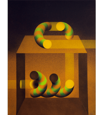 Além disso, Le Parc frequentemente usa cores vibrantes em suas gravuras, criando contrastes marcantes e jogos de luz e sombra que ajudam a acentuar a sensação de movimento e profundidade em suas obras.