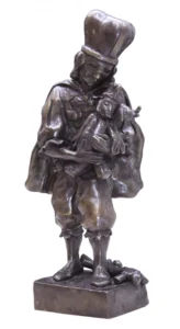 Mario Gruber - Vendedor de Ilusões PA1. Bronze patinado, 40x18x17 cm, 2005