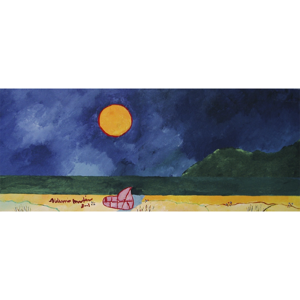 Aldemir Martins – Marinha com jangada. Acrílica sobre tela, 35x85cm, 2001