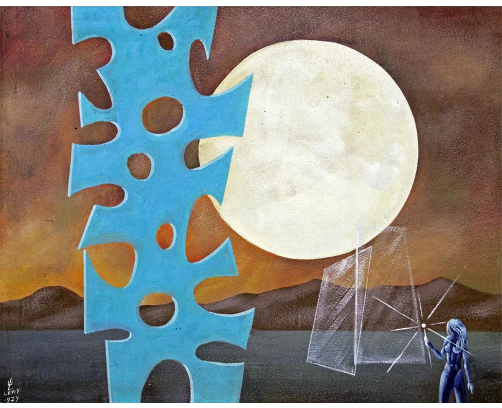 Walter Lewy – Paisagem surreal. Óleo sobre tela, 40×50 cm, 1985